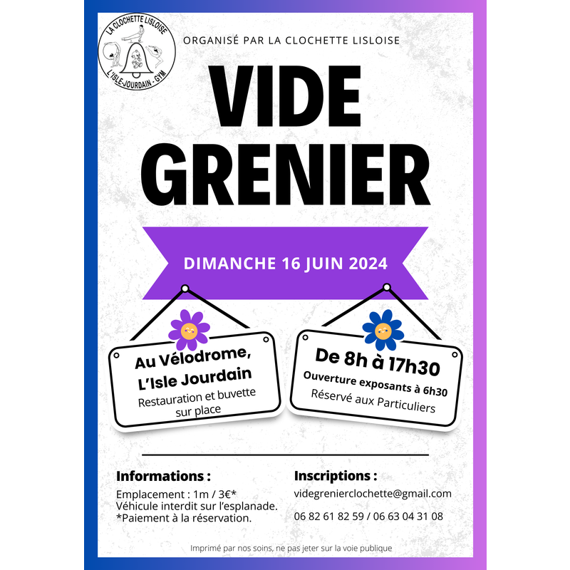 que vous soyez amateurs de trésors cachés, chineurs passionnés, ou à la recherche de bonnes affaires et de pièces uniques, ce vide grenier est fait pour vous ! Venez vendre vos objets ou tout simplement flâner entre les stands