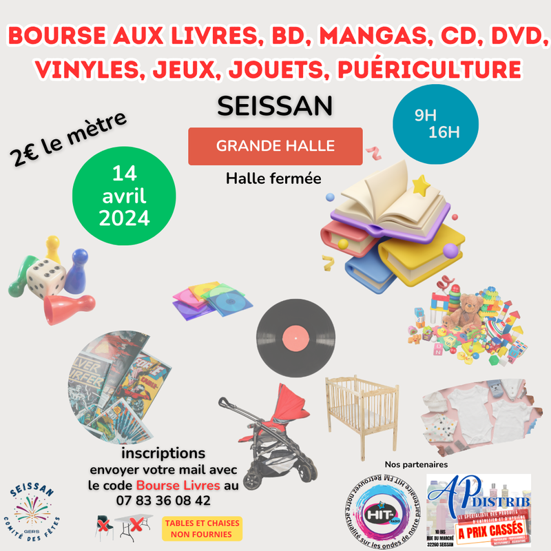 Après le très beau succès de notre vide dressing, et pour continuer dans les ventes à thème, nous vous proposons cette première bourse aux livres, bd, manga, cd, dvd, vinyles jeux, jouets & puériculture.