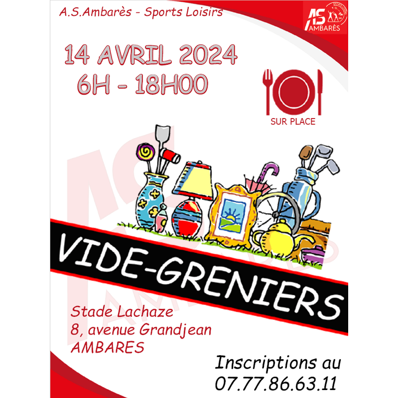 Vide grenier organisé le dimanche 14 avril 2024 par l'association sportive ambarésienne