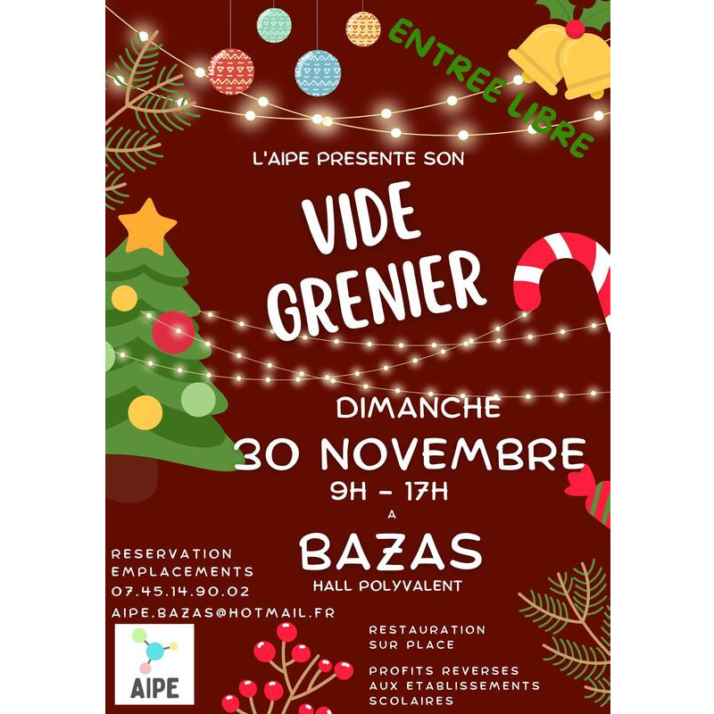 Vide grenier de nöel l'association indépendante de parents d'elèves de bazas (aipe)