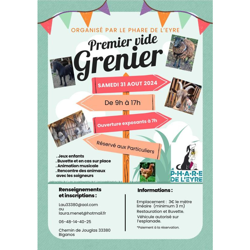 Le phare de l'eyre est heureux de vous proposer son premier vide grenier en pleine nature dans un cadre agréable entouré d'animaux.