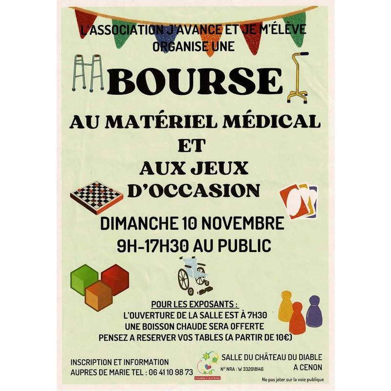 Bourse au matériel médical et consommables neufs à prix d'occasion, jeux, jouets, vêtements, etc..