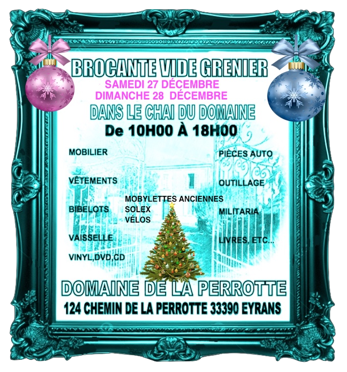 Samedi 27 & Dimanche 28 décembre au Domaine de la Perrotte , Vide grenier :Brocante au 124 route de la Perrotte Domaine de la Perrotte 33390 Eyrans.