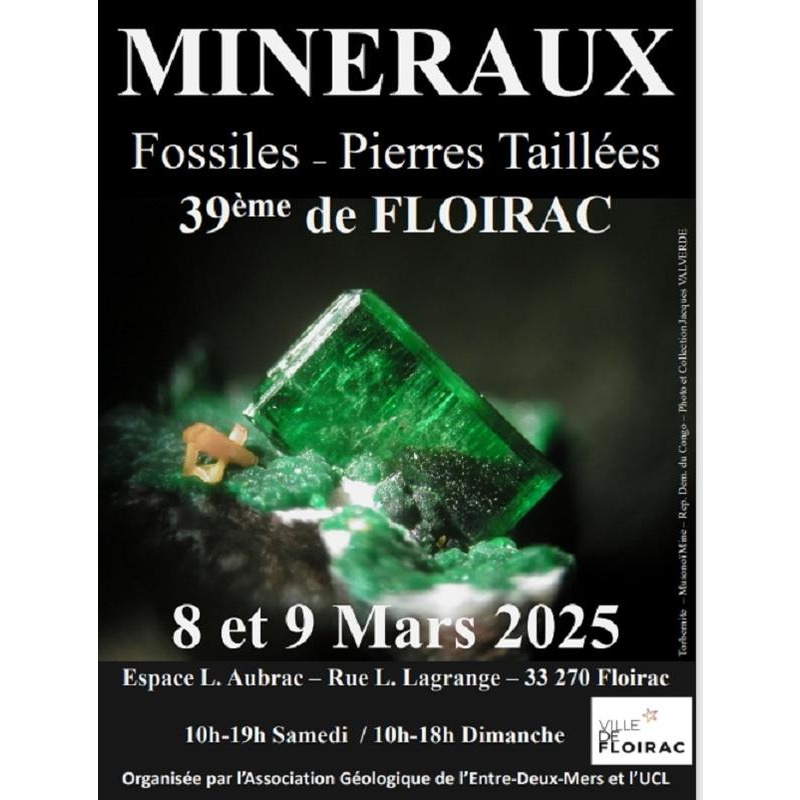Le club de géologie de l'entre-deux-mers propose son 39ème salon de minéralogie et de paléontologie. Une vingtaine d'exposants vous proposerons de magnifiques pièces minéralogiques et paléontologiques en provenance du monde entier. Une sélection de leurs trouvailles. Des objets sculptés en pierre. Le samedi 08 mars et le dimanche 09 mars 2025. Il aura lieu dans l'espace lucie aubrac, rue léo lagrange à floirac. Ouverture au public de 10 heures à 18 heures. Accès mobilité réduite.