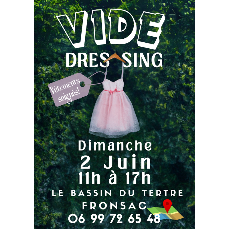 Vide dressing qualitatif. Vêtements soignés. 26 stands dans les jardins du bassin du tertre sur le tertre de fronsac. Journée conviviale 11h à 17h. Buvette la 3 tertres sur place. Frites. Gaufres. Glaces. Bières artisanales locales. Vins. Soda...