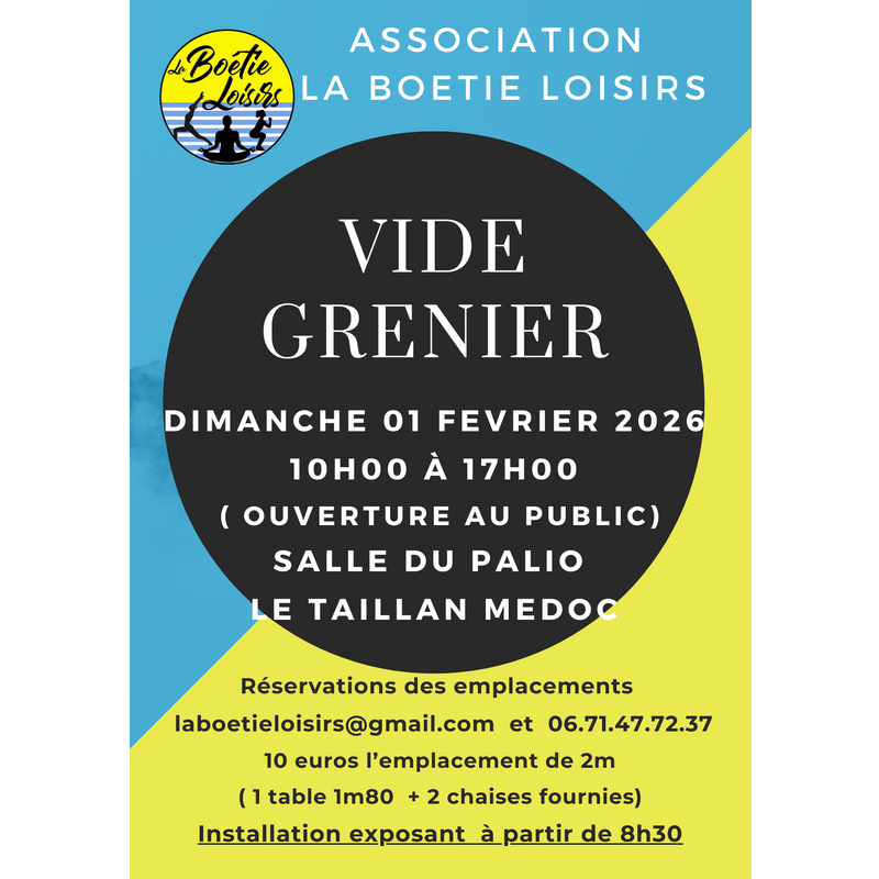 Vide grenier dans salle du palio: salle chauffée, accés handicapé, sanitaires sur site, buvette et restauration rapide sur place.