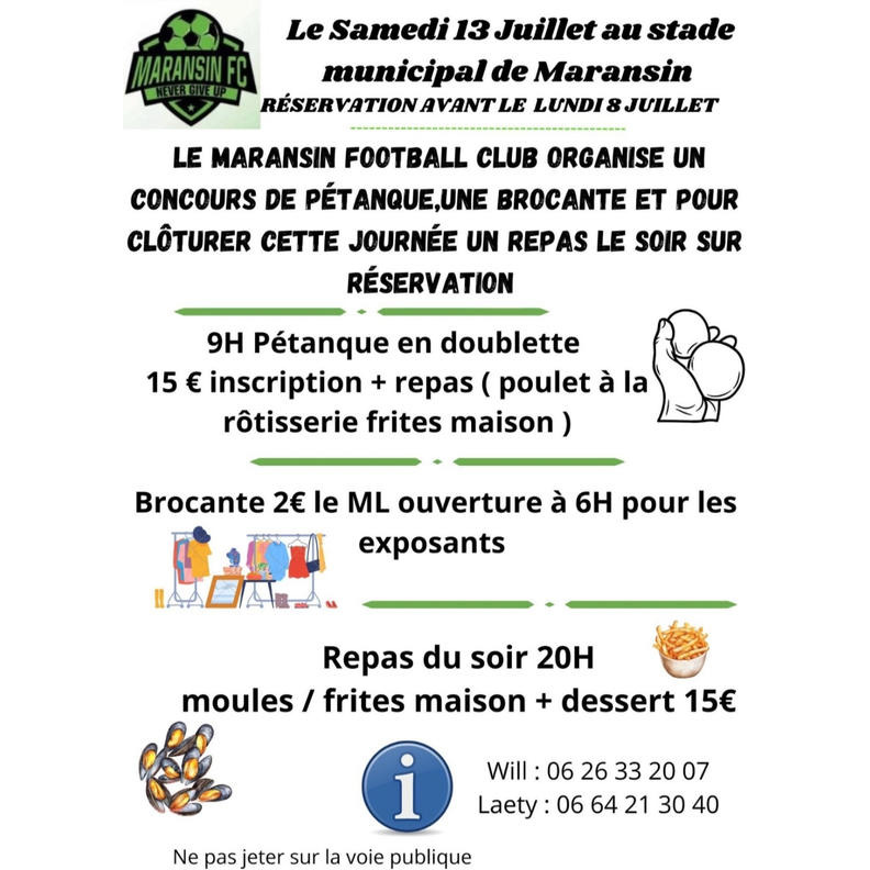 Brocante vide grenier, tournoi de pétanque l'après-midi et repas le soir avec animation
