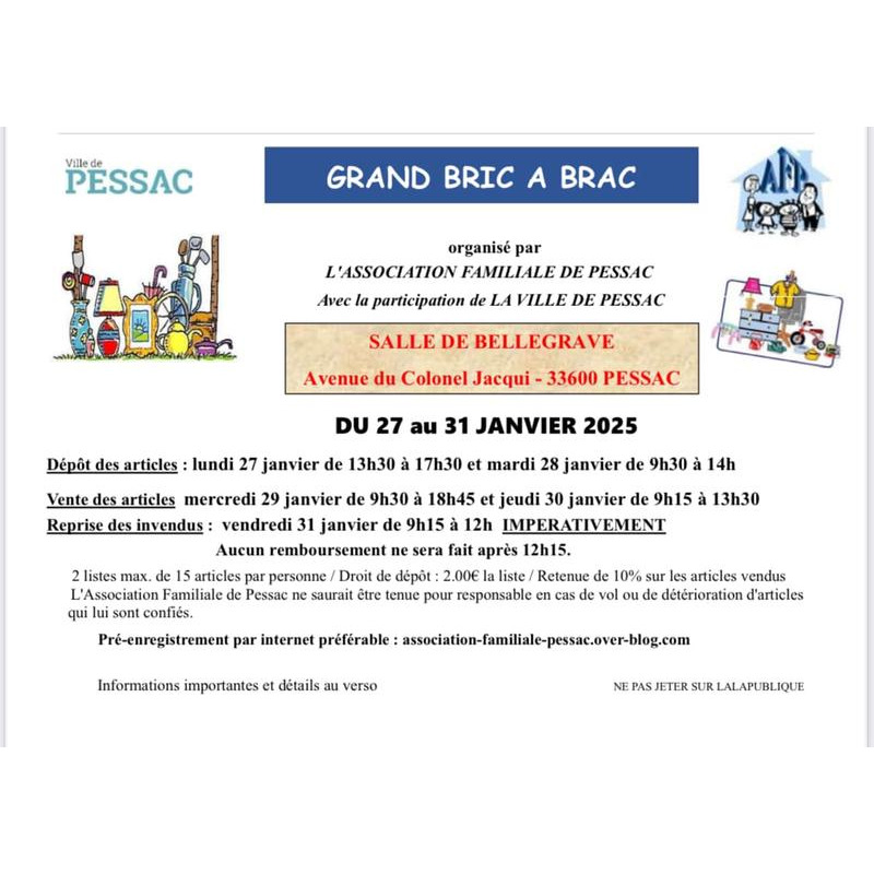 Vente des articles : mercredi 29 janvier de 9h30 à 18h45