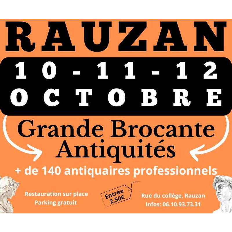 Du 10 au 12 octobre c'est à rauzan qu'il faut être! 53ème édition de la grande brocante antiquités avec plus de 140 antiquaires et brocanteurs professionnels! Nombreuses animations et restauration sur place afin de passer une journée inoubliable!