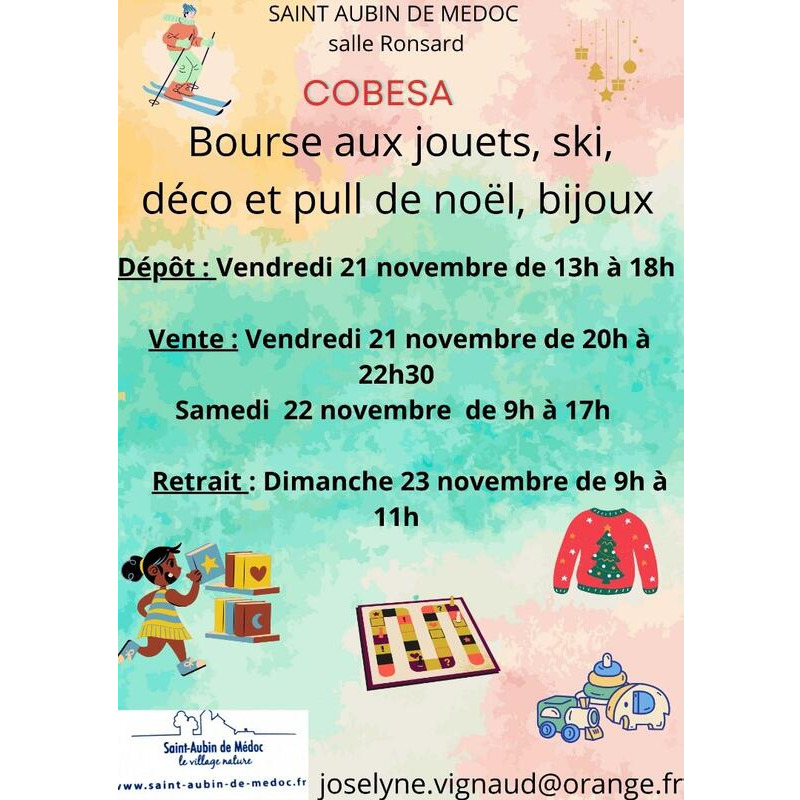 Bourse aux jouets, ski, déco et pull de noël, bijoux.