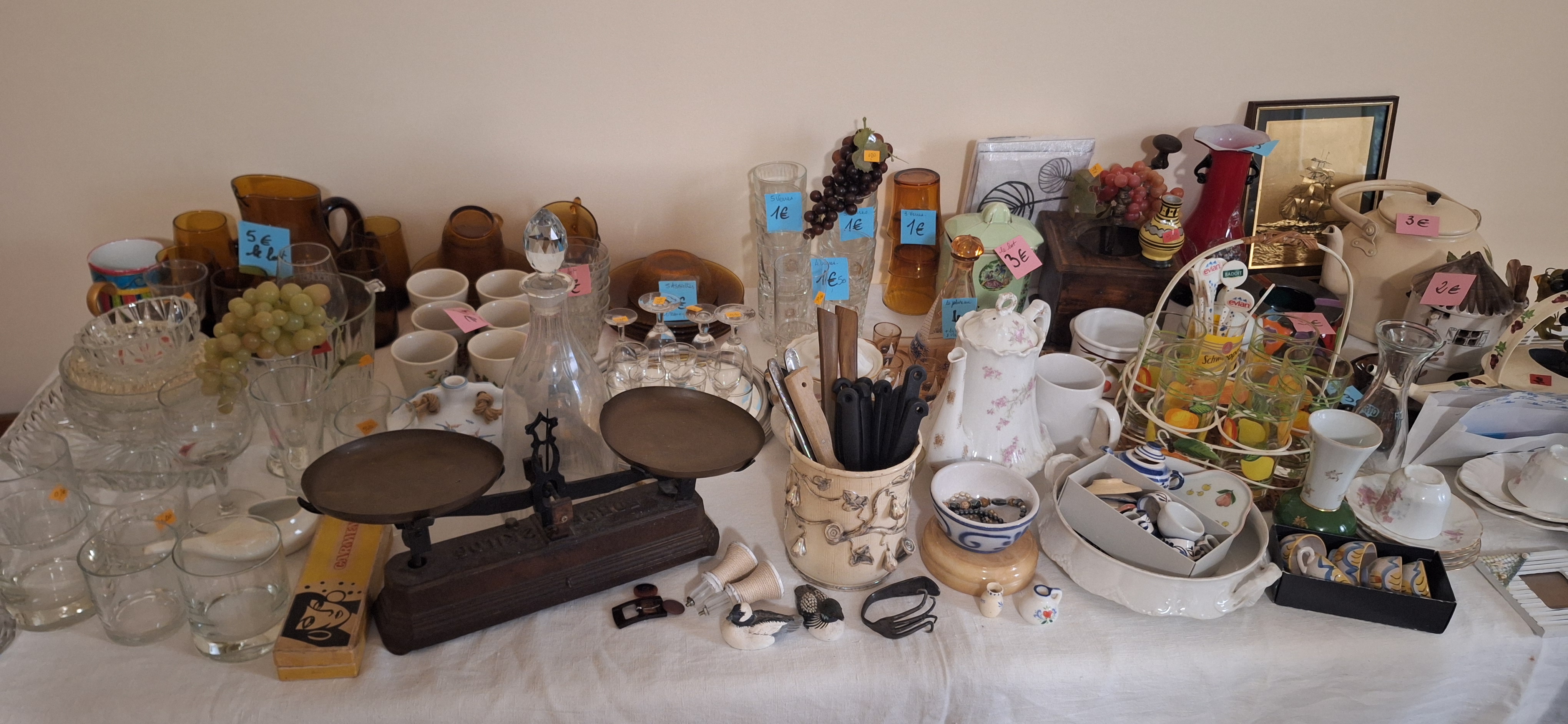 vide maison : vaisselle, objet de décoration, outillage, linge de maison, meuble...