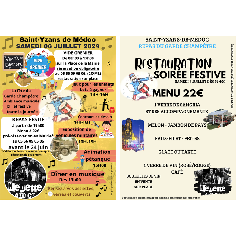 Une journée festive qui se termine par un dîner concert. Cette année c'est le groupe nenette and co qui jouera à partir de 19h00.