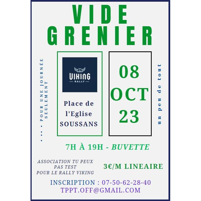 Vide grenier avec buvette au profit de l'association tppt pour la participation au rally viking