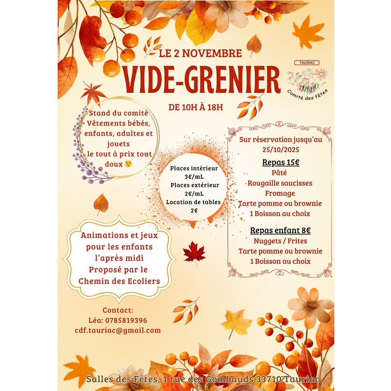 Restauration sur place sur réservation (rougailles saucisse maison), buvette, animation et jeux enfants, maquilleuse, stand petit budgets tenu par le comité ( jouets enfants, vêtements toute tailles, de bébé à adulte), structure gonflable gratuite.