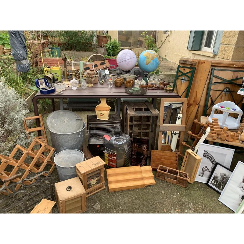 chiliennes, vaisselle ancienne et récente, hamac, , stérilisateur pour bocaux, poêle à pétrole, tuyaux poêle, cafetière italienne, cadres déco, tableaux, lampes uv terrarium, fontaine à eau pour chats, jeux de société, jouets, puériculture, dvd disney, livres, patères anciennes et récentes, casiers bouteilles, vêtements bébé et adultes, parures de draps, articles de sport, rack vélo, pompe à pieds, paniers osiers, caisse bois, divers objets anciens, carafes en verre, chaises écoliers, buste plastique, rideau de perles bois, meuble bois, matériel professionnel de cuisine, casier à œufs, clayette bois anciennes, mappemondes, service à fondue, sorbetière ,objets divers vintage, bottes de pluie enfants, cloches, bougeoirs, vases,