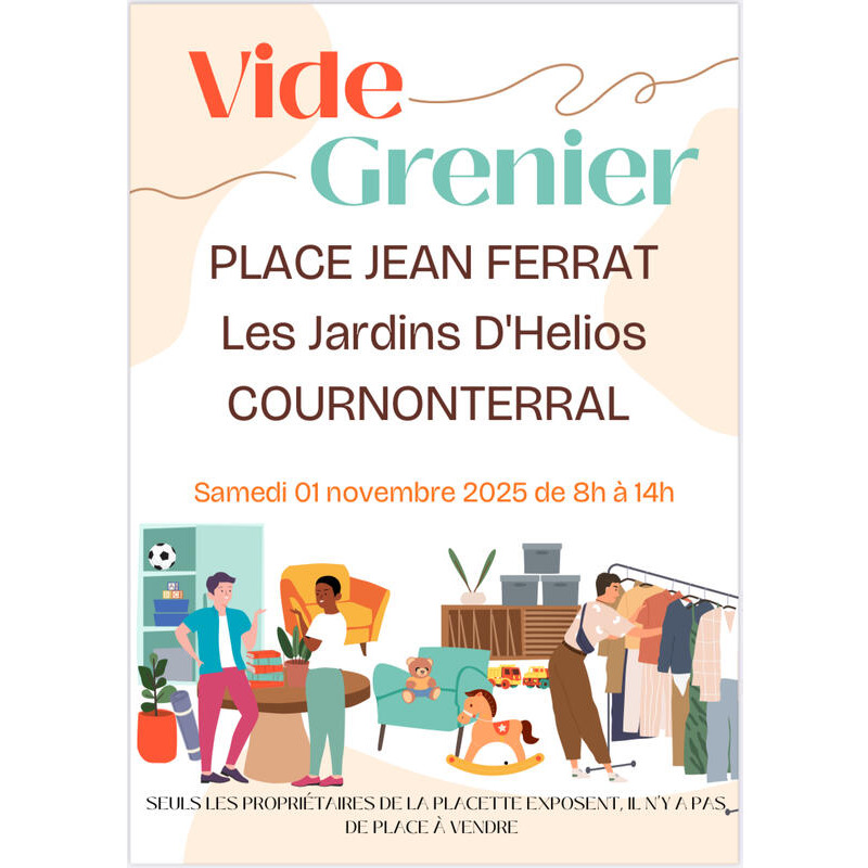 La place jean ferrat aux jardins d'helios organise son vide grenier le 01 novembre de 8h à 14h.