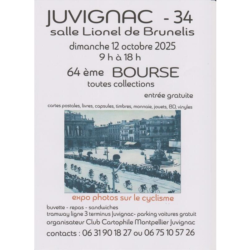 64ème bourse aux collections de juvignac à l'espace lionel de brunélis (rue des cigales) organisé par le club cartophile montpellier-juvignac.