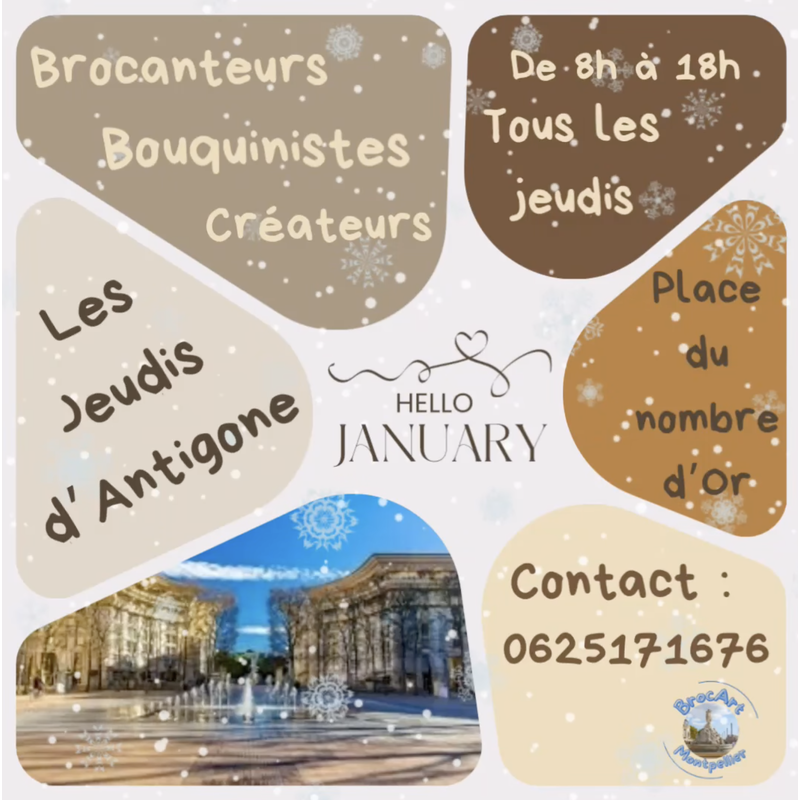 Les jeudis d'antigone - des professionnels vous accueillent sur la place du nombre d'or à montpellier : brocanteurs, bouquinistes, artisans et créateurs.