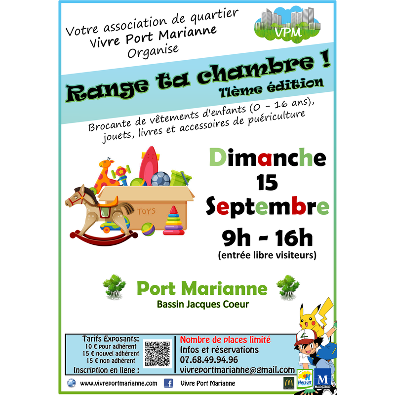 La grande brocante de l’univers de l’enfance (0-16 ans) revient pour sa 11e édition le dimanche 15 septembre 2024 de 9h à 16h dans le quartier port marianne au bassin jacques coeur.