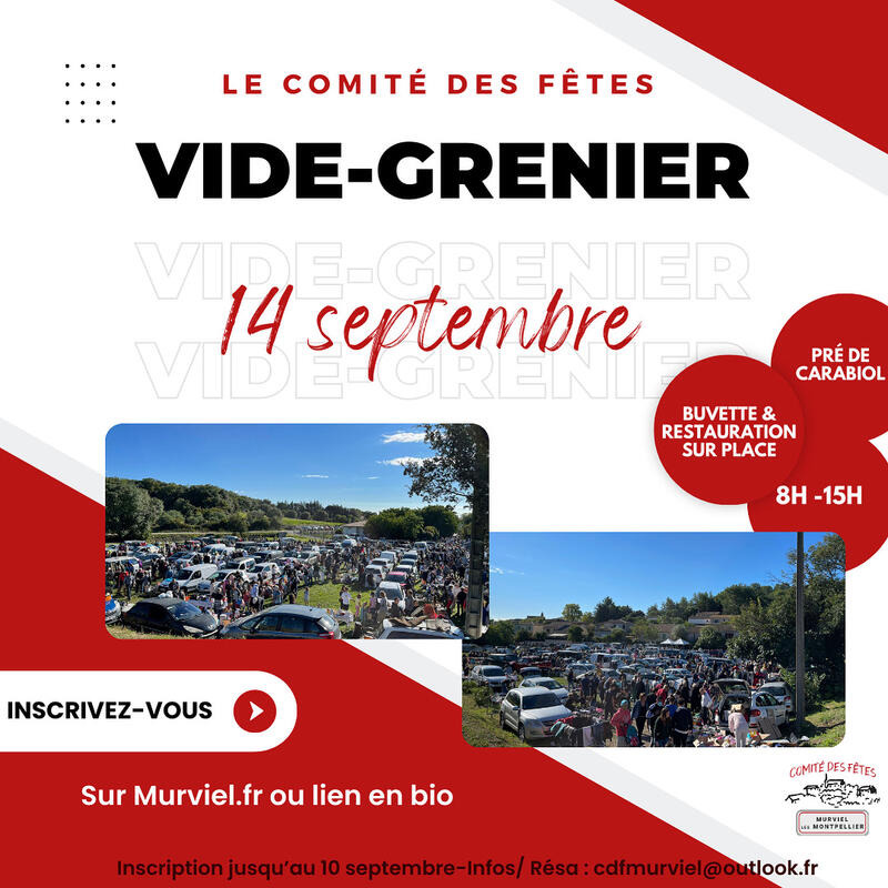 Le comité des fêtes de murviel organise un vide-grenier, le dimanche 14 septembre 2025 au pré de carabiol de 08h à 15h.