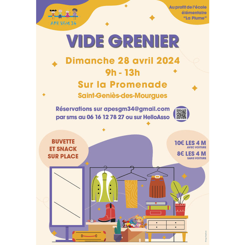 L'apesgm34 organise un vide-greniers sur la promenade à saint-geniès-des-mourgues.