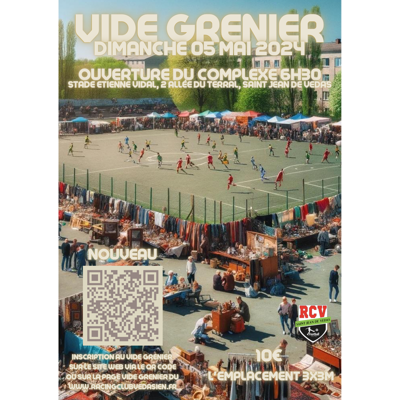 "trouvez des trésors au vide-grenier du racing club védasien ! Avec buvette et restauration sur place. Venez nombreux !"