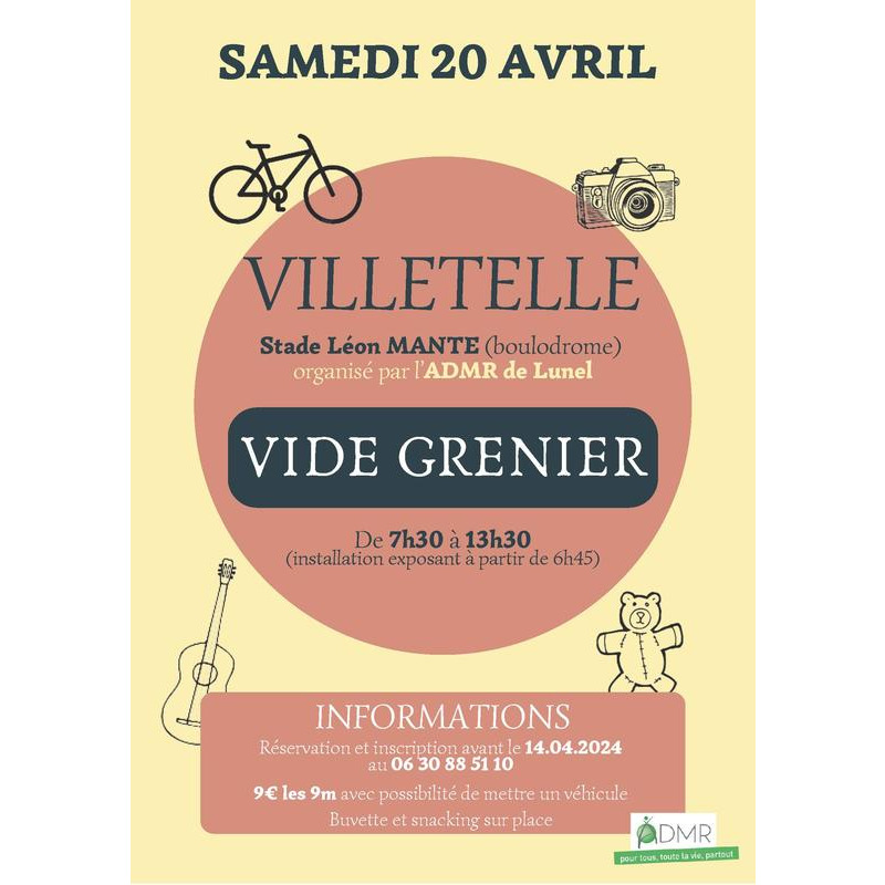 L'admr de lunel organise un vide grenier à villetelle le samedi 20 avril