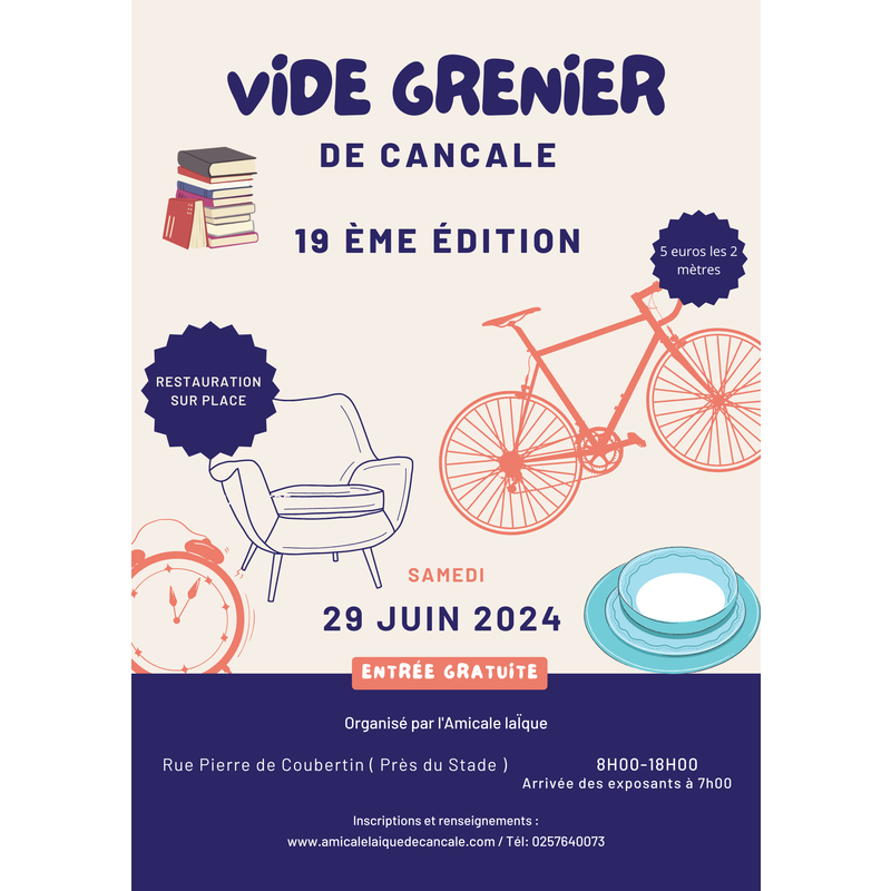 Vide grenier de cancale 19ème édition, organisé par l'amicale laïque. 8h à 18h