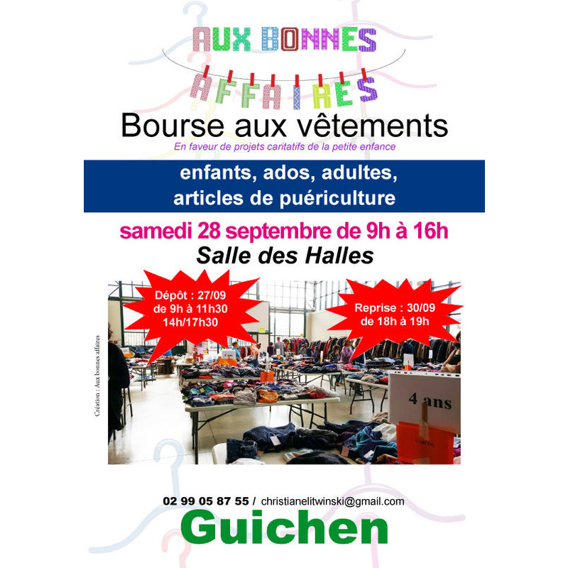 Une bourse aux vêtements automne/hiver pour enfants et adultes aura lieu le samedi 28 septembre dans les halles de guichen (35).