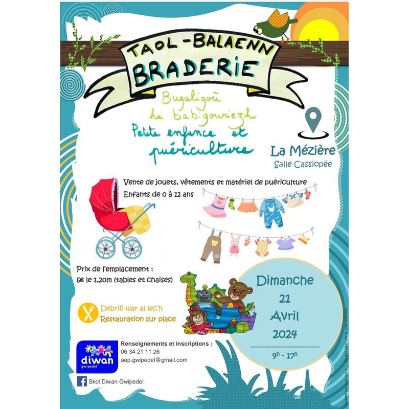 Braderie puériculture en intérieur.