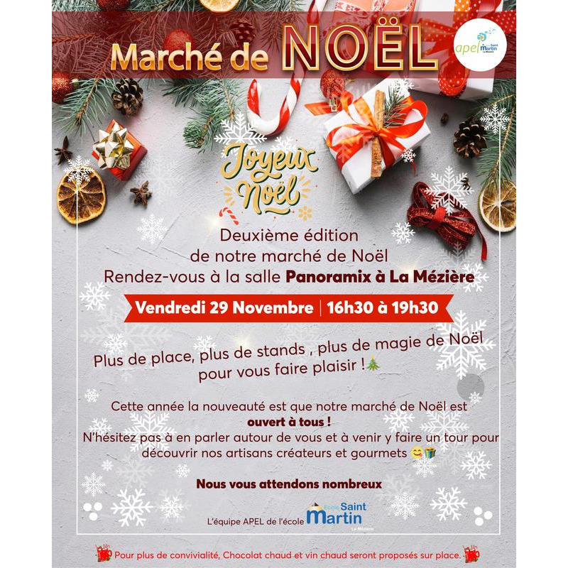 L'apel de l'ecole saint martin de la mézière organise son 2ème marché de noël le 29/11/2024 de 16h30 à 19h30 à la salle panoramix