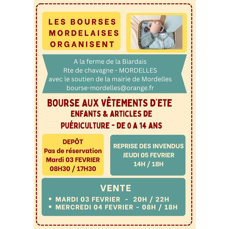 Bourse aux vêtements d'été et puériculture de 0 à 14 ans.