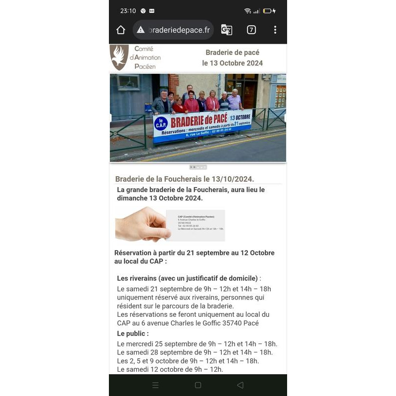 C’est avec le concours de la municipalité, que le comité d’animation pacéen, organise sa traditionnelle braderie de la foucherais le dimanche12 octobre prochain.
