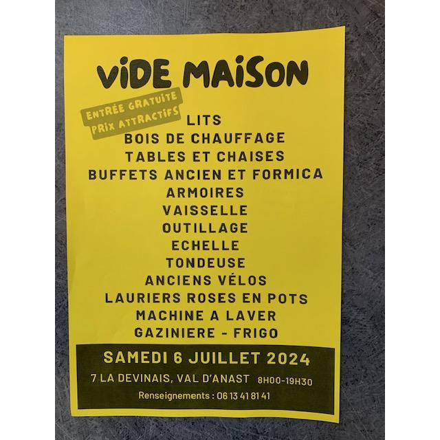 Entrée gratuite. Prix attractifs. Lits, buffet en formica, buffet breton, lits, tables, chaises, chaise longue, vaisselle, outillage, tondeuse