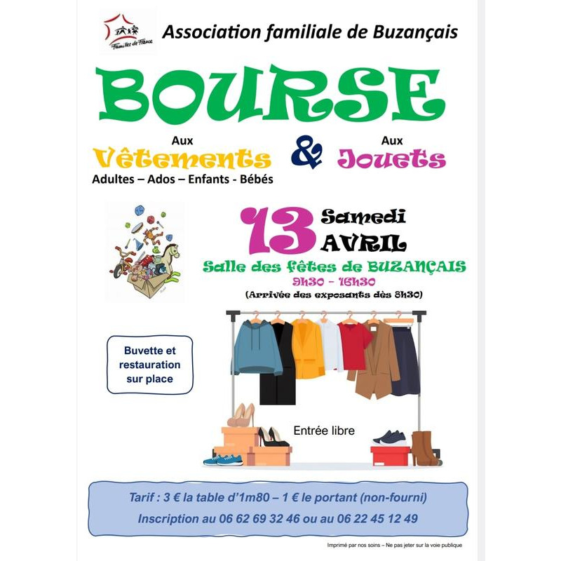 Bourse aux vêtements enfants, femmes et hommes et jouets.