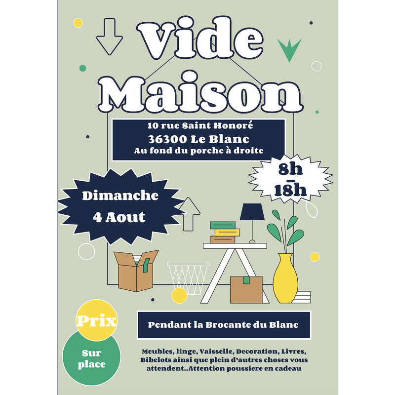 En plein centre ville, venez dénicher des trésors dans cette grande maison ou beaucoup de choses seront a vendre, vaisselle, vêtements vintage, meubles, jouer, outils, pins...