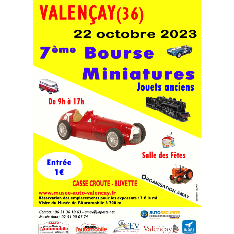 8ème bourse miniature et jouets anciens, organisée par les amis du musée de l'auto de valençay, à la salle des fêtes de valençay le 20 octobre de 9 h à 17 h.