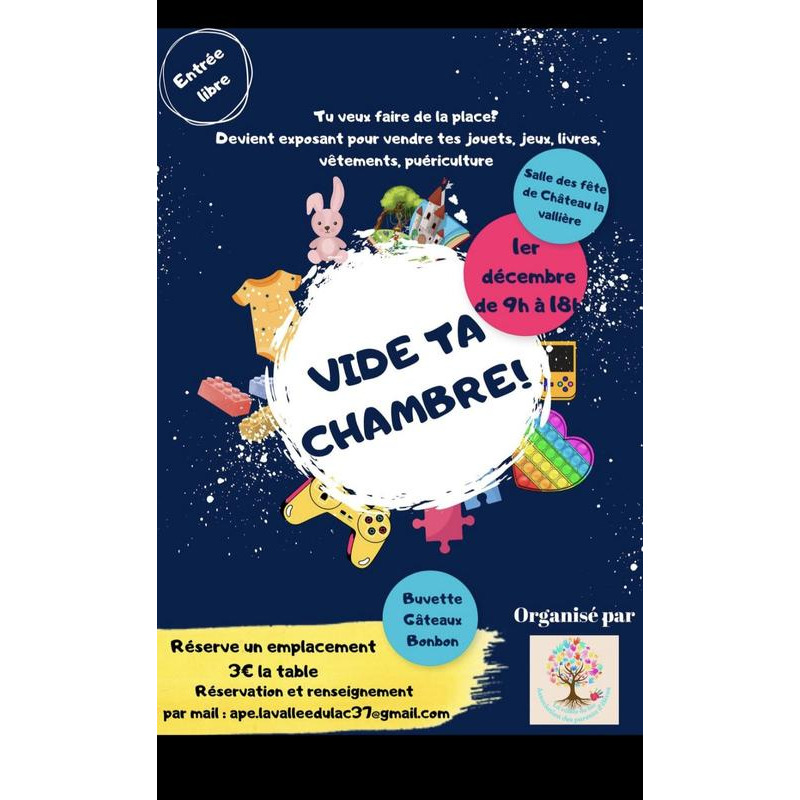 Venez nombreux au vide ta chambre de l'école de chateau la valliere. (a l'abri dans la salle des fêtes).