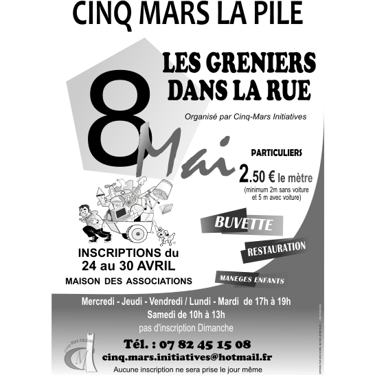 Grand vide maison, grenier et cave dans notre jardin à l'occasion de la grande brocante de cinq mars la pile, mercredi 8 mai. Beaucoup de choses à vendre à petits prix ( vaisselle, déco, vêtements, articles de puériculture, pour la maison, loisirs créatifs, carrés potagers... )