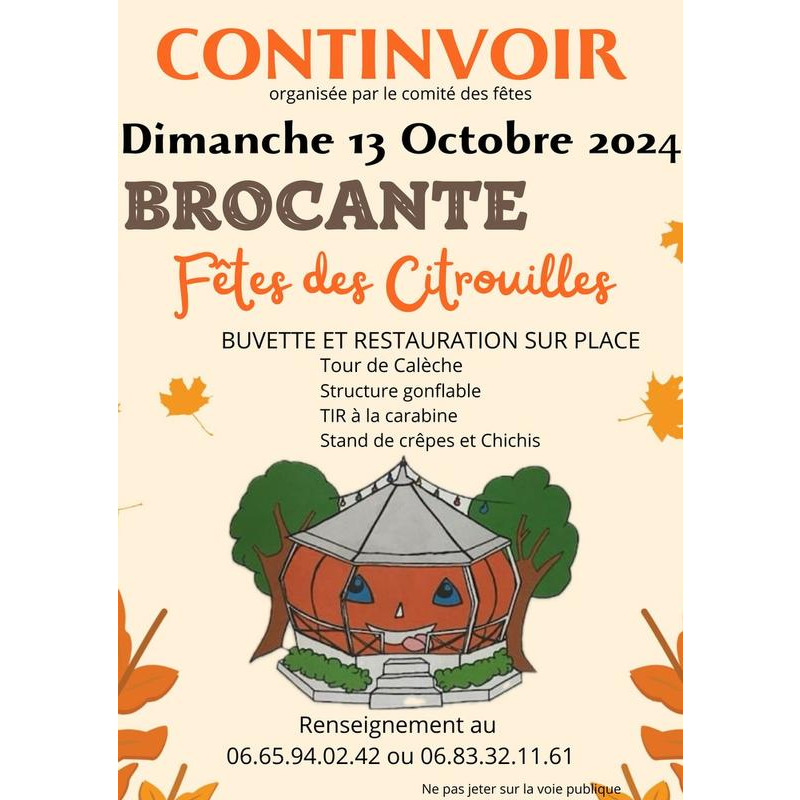 Le dimanche 13 octobre 2024 nous pourrons nous retrouvez à la fête des citrouilles à continvoir. Vous pouvez vous inscrire dès à présent pour la brocante.