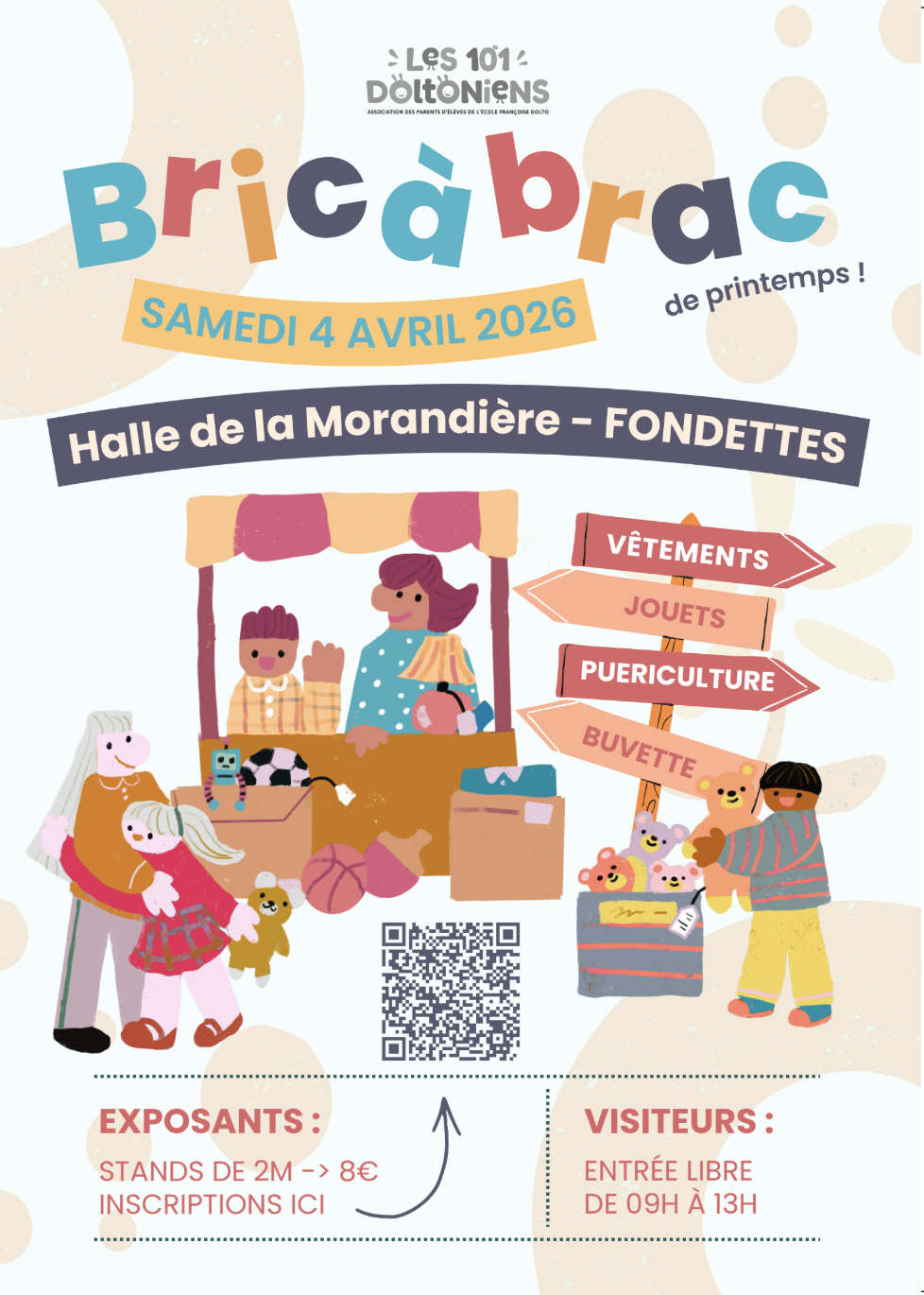 L’association de parents Les 101 DOLTOniens organise son Bric-à-Brac de Printemps.