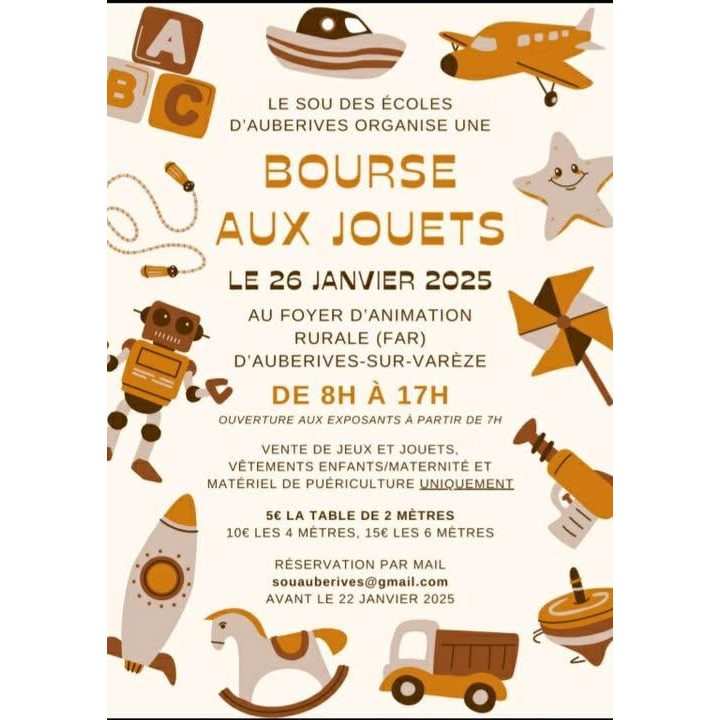 Le sou des écoles organise une bourse aux jouets le dimanche 26 janvier, de 8h à 17h, au far.