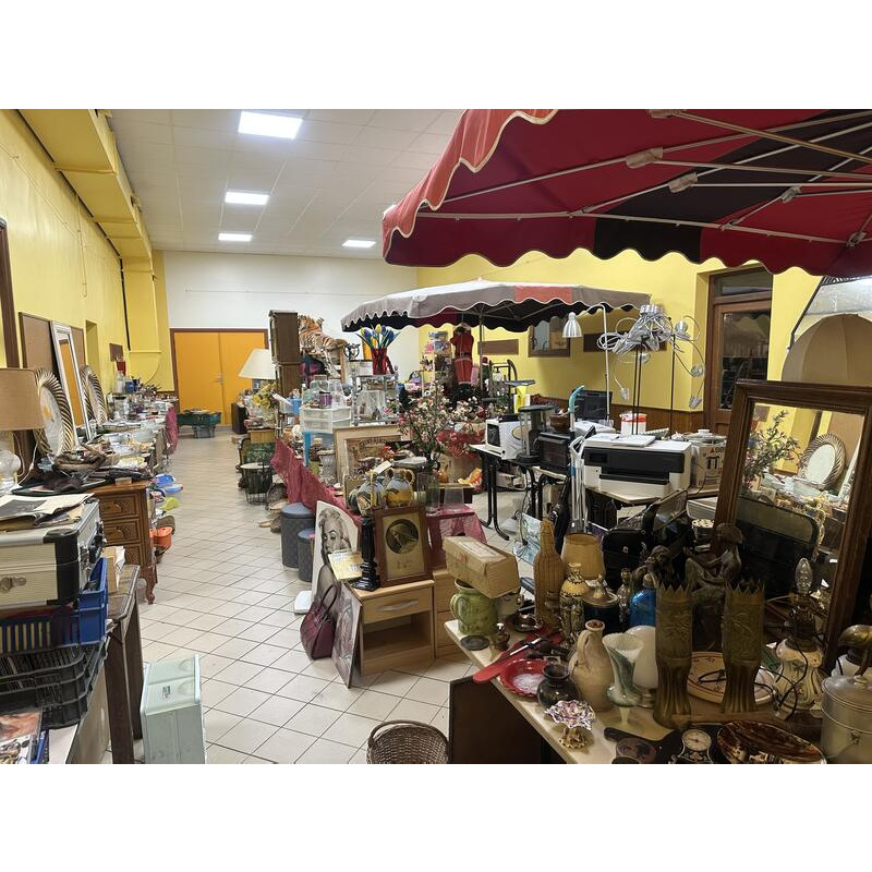 Bonjour, nous vous proposons de la vaisselle, du mobilier, de la décoration, des livres, du petit outillage et un peu de gros (échafaudage), des vêtements, de la brocante et du petit électroménager, etc…