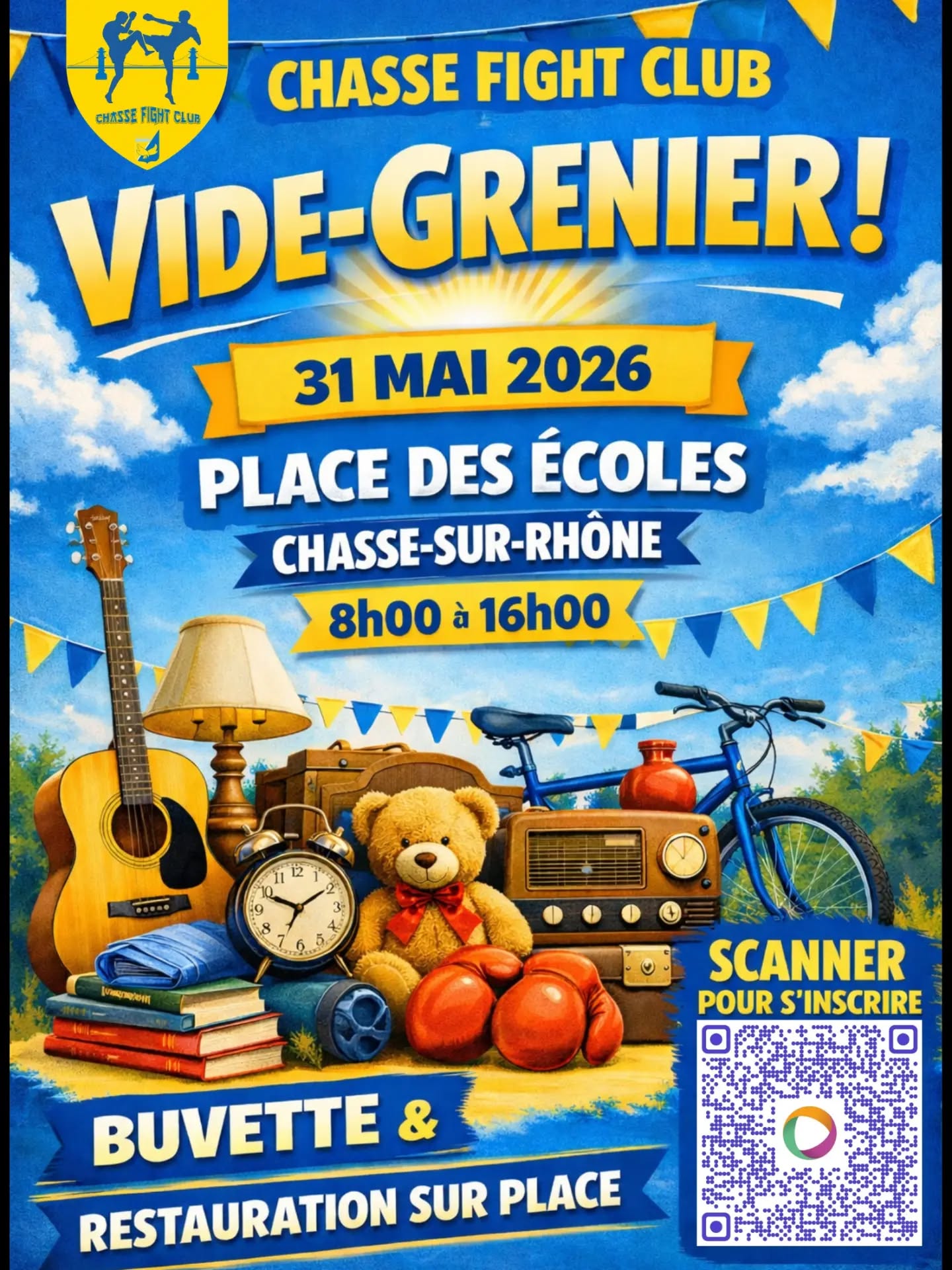 Vide grenier du Chasse Fight Club organisé sur la place de l'école Pierre Bouchard