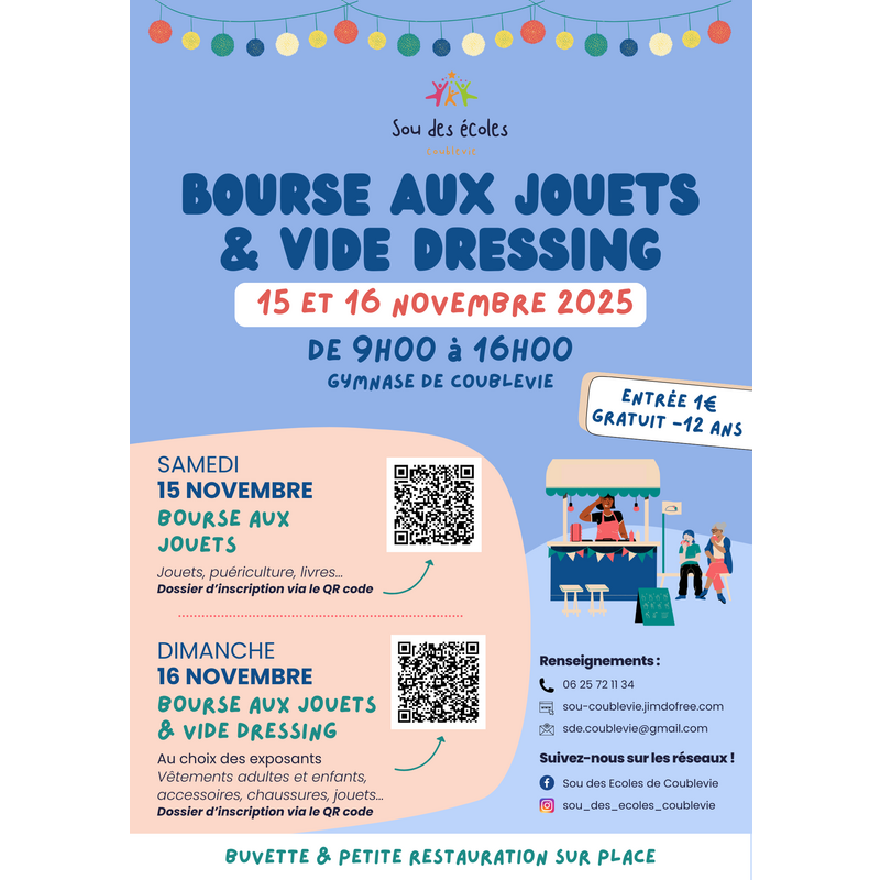 Le sou des écoles de coublevie organise la 28ème bourse aux jouets le 15 et 16 novembre 2025.