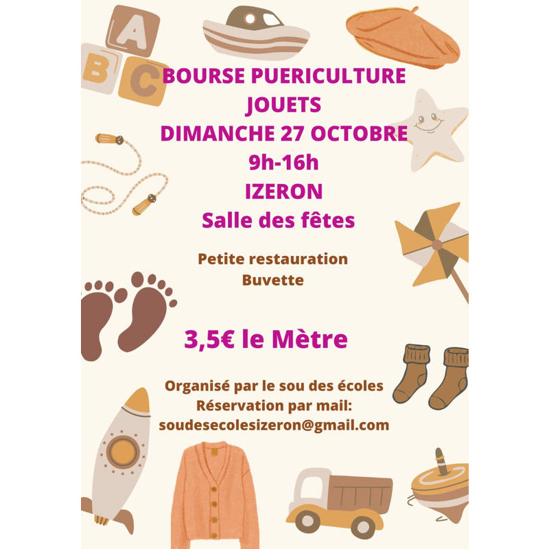 Bourse de puériculture et jouets organisée par la sou des écoles avec petite restauration et buvette