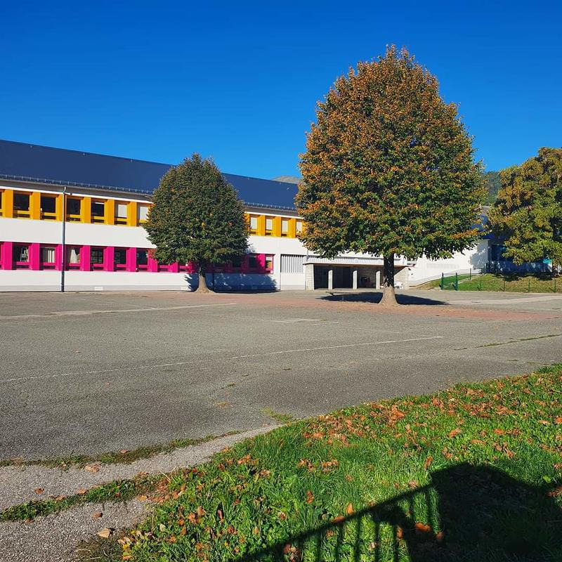 Retrouvez des particuliers dans la cour de l'école primaire.