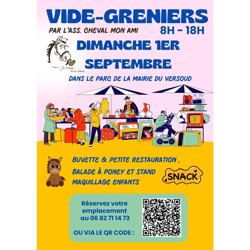 nous avons le plaisir de vous annoncer que notre grand vide-greniers annuel aura lieu le 1er septembre 2024 dans le magnifique parc de la mairie du versoud !