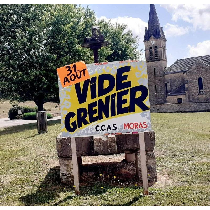 Vide grenier annuel sur la place du village organisé par le ccas de moras .