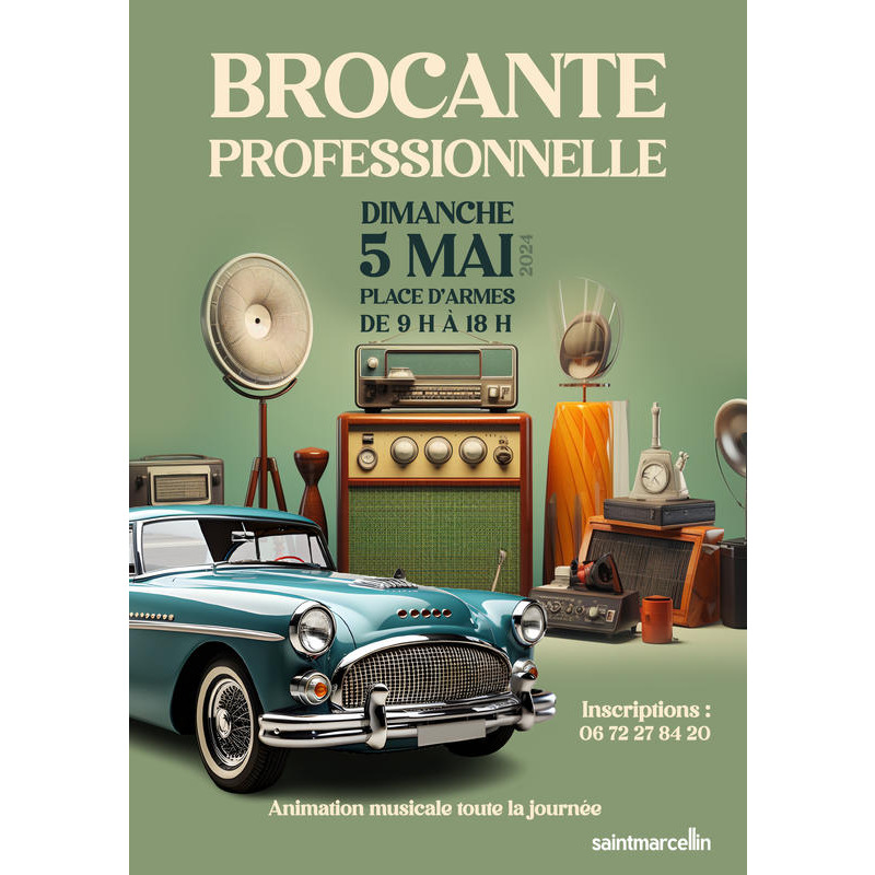 Brocante de 7 antiquaires professionnels de 9h à 18h sur la place d armes de st marcellin 38160 en extérieur en plein centre ville.